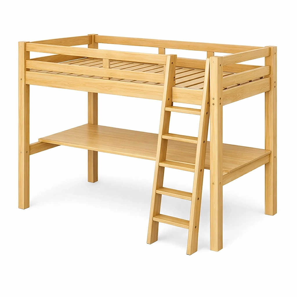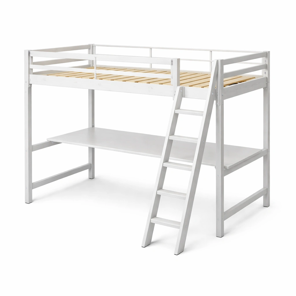 Letto a soppalco in legno massello bianco con scrivania e scala