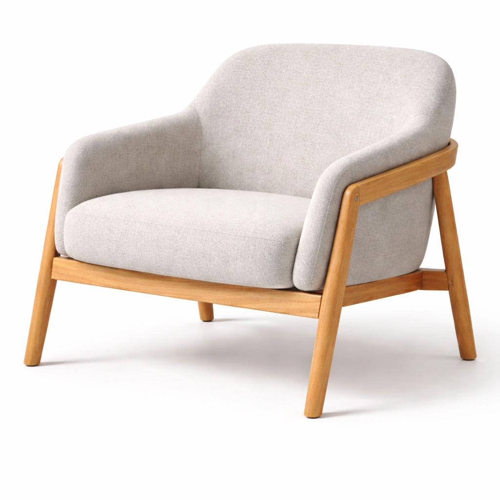 Poltrona in tessuto e legno massello beige