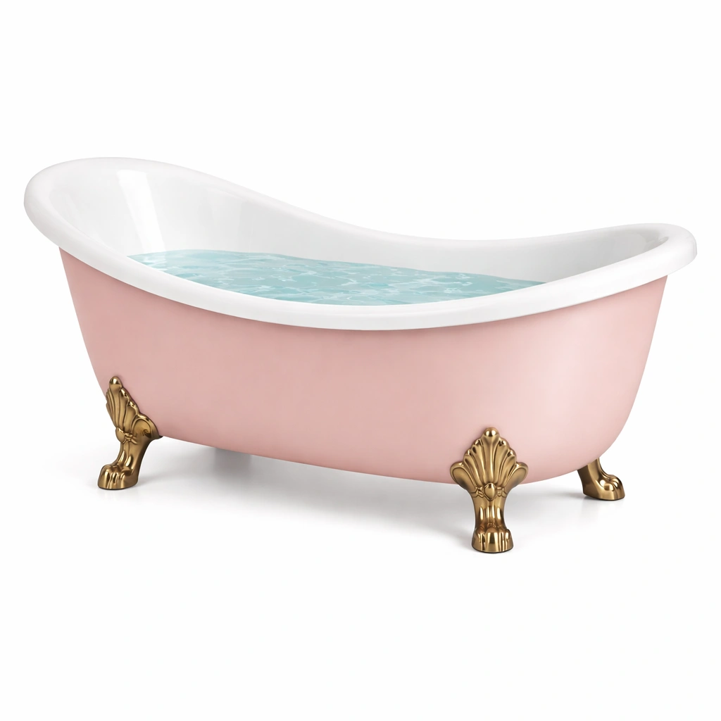 Vasca da bagno freestanding in acrilico rosa con piedini dorati