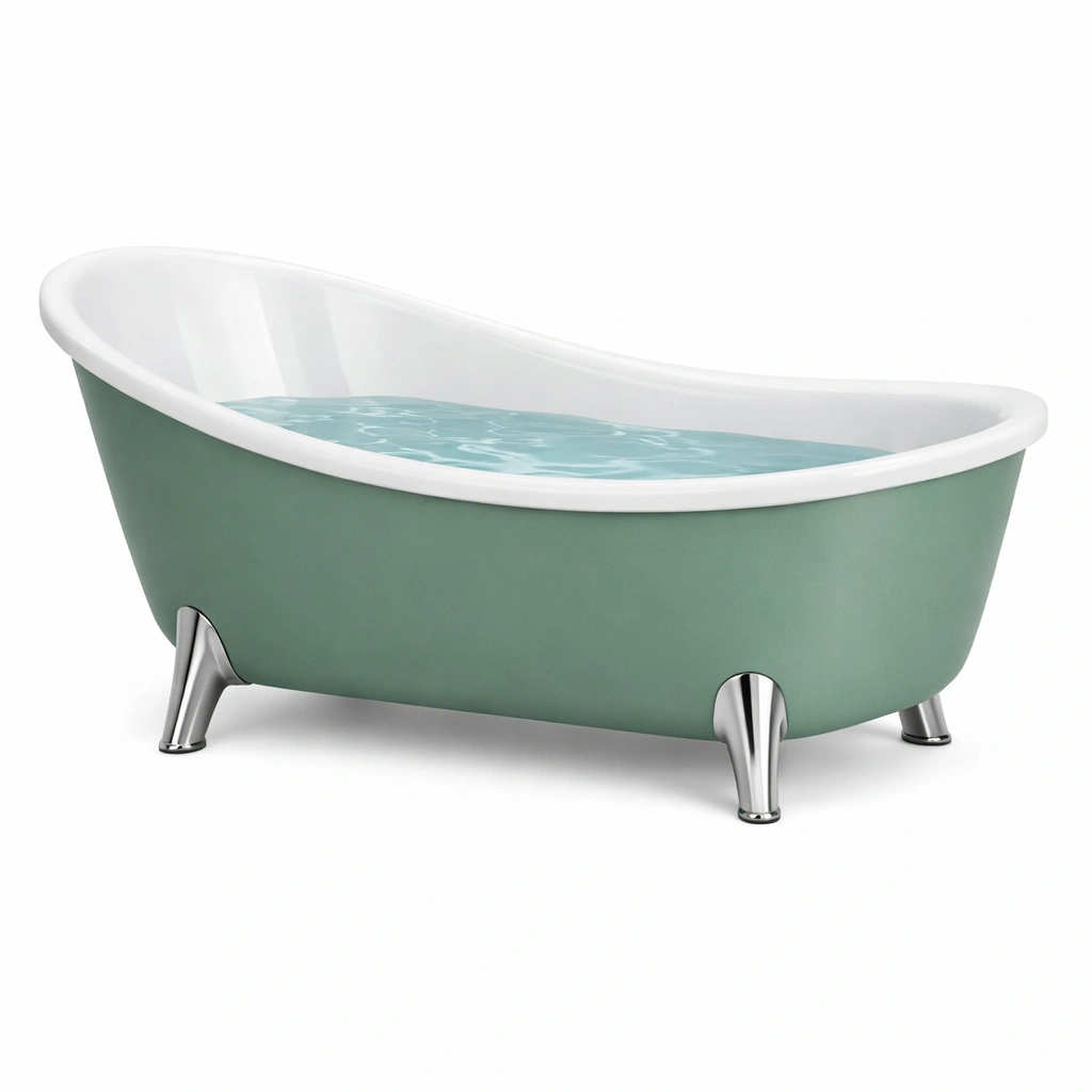 Vasca da bagno freestanding in acrilico con gambe in acciaio verde bianco